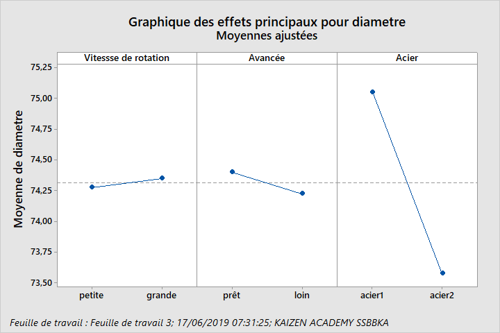 diamètre = 74,07 + 0,000109 lavancée de la pièce